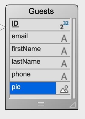 | exposed Function createGuestEntity()->$guest : 4D.Entity $guest:=ds.Guests.new() |