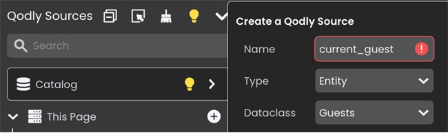 Then, in the On Loaded event of the page, call a function that creates an entity from the table and outputs the entity, which binds to the newly-created Qodly source. For example: