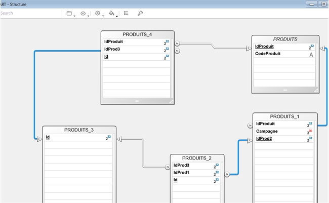 To solve the problem, choose a link in the same direction.(for instance, the 1→N link from [PRODUITS].IdProduit to [PRODUITS_4].IdProduit) and change its propagation mode from Automatic to Manual, then restart the database.