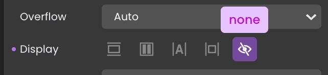 Generally, on its own, this is not very useful, but when combined with States to trigger the appearance and disappearance of the component, it can become quite handy. Since a component that has its Display property set to “none” is completely hidden, it will not be editable by selecting it on the page editor. It must be selected in the Page section under the Outline section of the left sidebar.