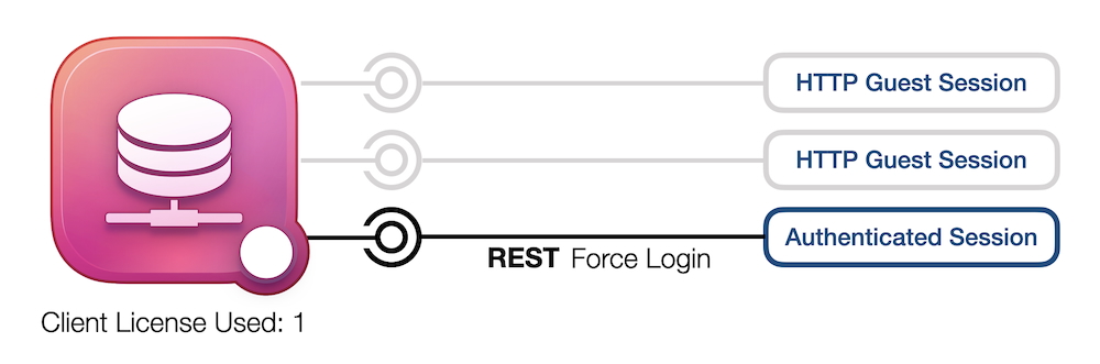 The “Force Login” feature in 4D secures access to REST services and Qodly applications by requiring users to sign in before performing protected actions. When a connection is first established, a guest session is created with no privileges and no assigned license until valid login credentials are provided.