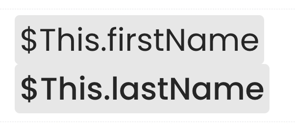When adding dynamic text component to a page from a Qodly source (such as from a Dataclass) the text will usually appear in the editor as something like “$This.myAttribute” by default.